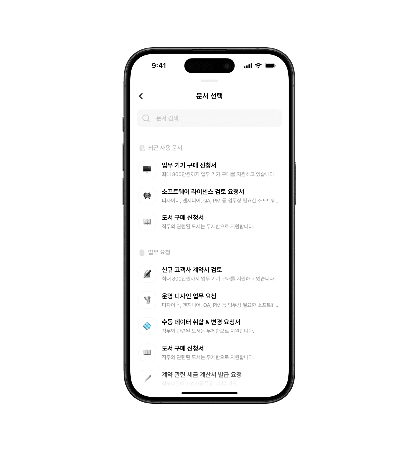 리스트는 웹과 마찬지로 모바일 UI에서 거의 80%의 비율을 차지하는 UI입니다. 웹에서 리스트가 기반이 되는 컴포넌트였던 것과 마찬가지로 fxm에서도 중요한 컴포넌트로 다뤄집니다. 다만 fxm에 기조에 맞춰서 미리 정의된 조합을 제공하기 위해서 형태적인 탐구를 진행하였습니다. 형태적인 탐구 과정에서는 도메인 맥락을 적절하게 표현하는데만 집중하고, 이후에 공통화할 수 있는 형태를 발굴하는데 노력했습니다.