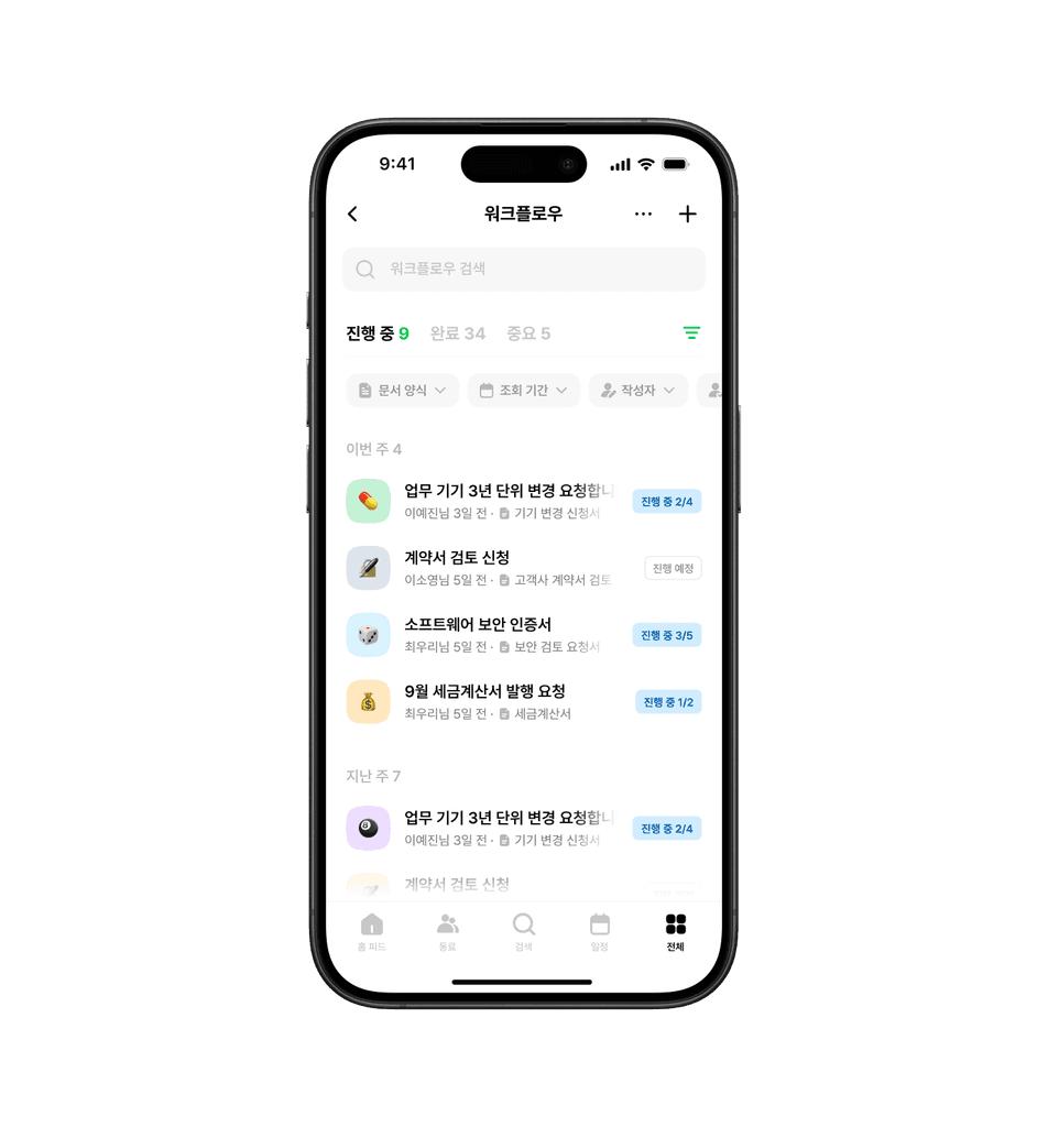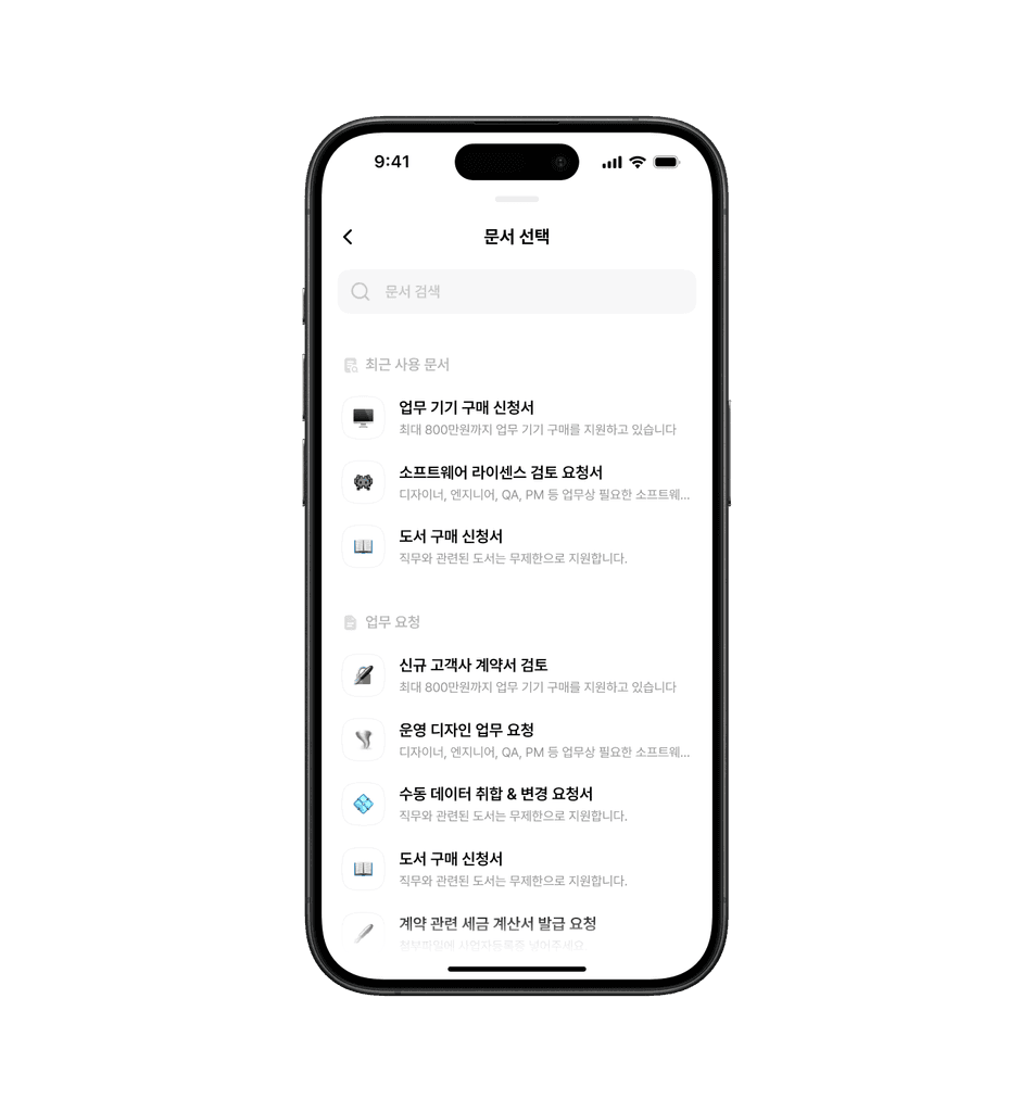 flex는 오피스에서 PC를 통해서 접속하는 상황을 주로 고려한 제품이기 때문에 기본적으로 모바일 UX 플로우, 단계 깊이가 고려되지 않았습니다. PC 웹은 큰 화면을 활용해서 여러 정보를 동시에 보면서 과업을 하는데 적합하게 설계되어있었다면, 모바일 앱에서는 적절하게 플로우를 분절시키면서도 자나치게 복잡하지 않은 플로우로 느껴지도록 하는게 제일 큰 고민이었습니다.